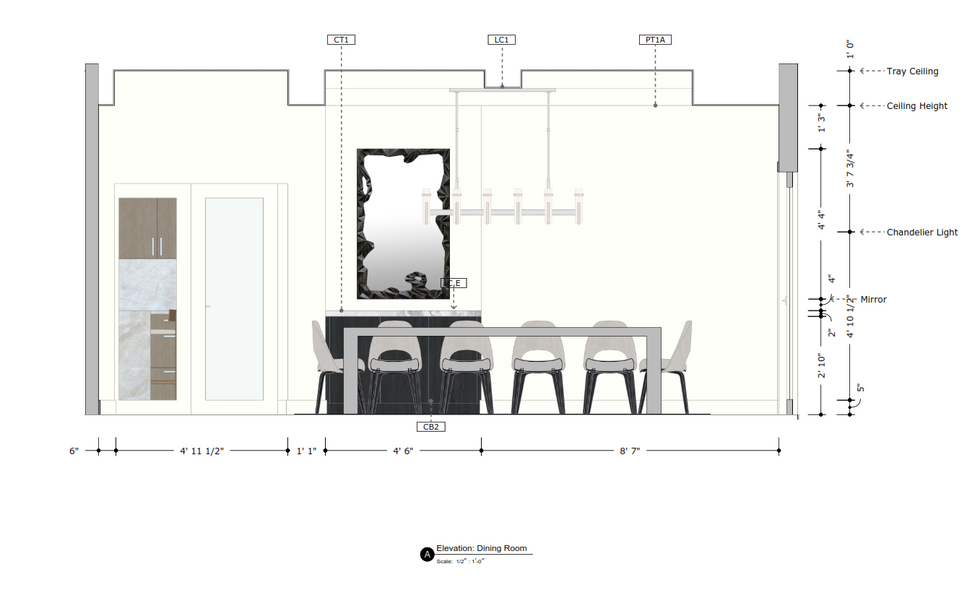 Tasks: interior design, 3D modeling, drafting, cabinetry design, detailing, and construction documentation.